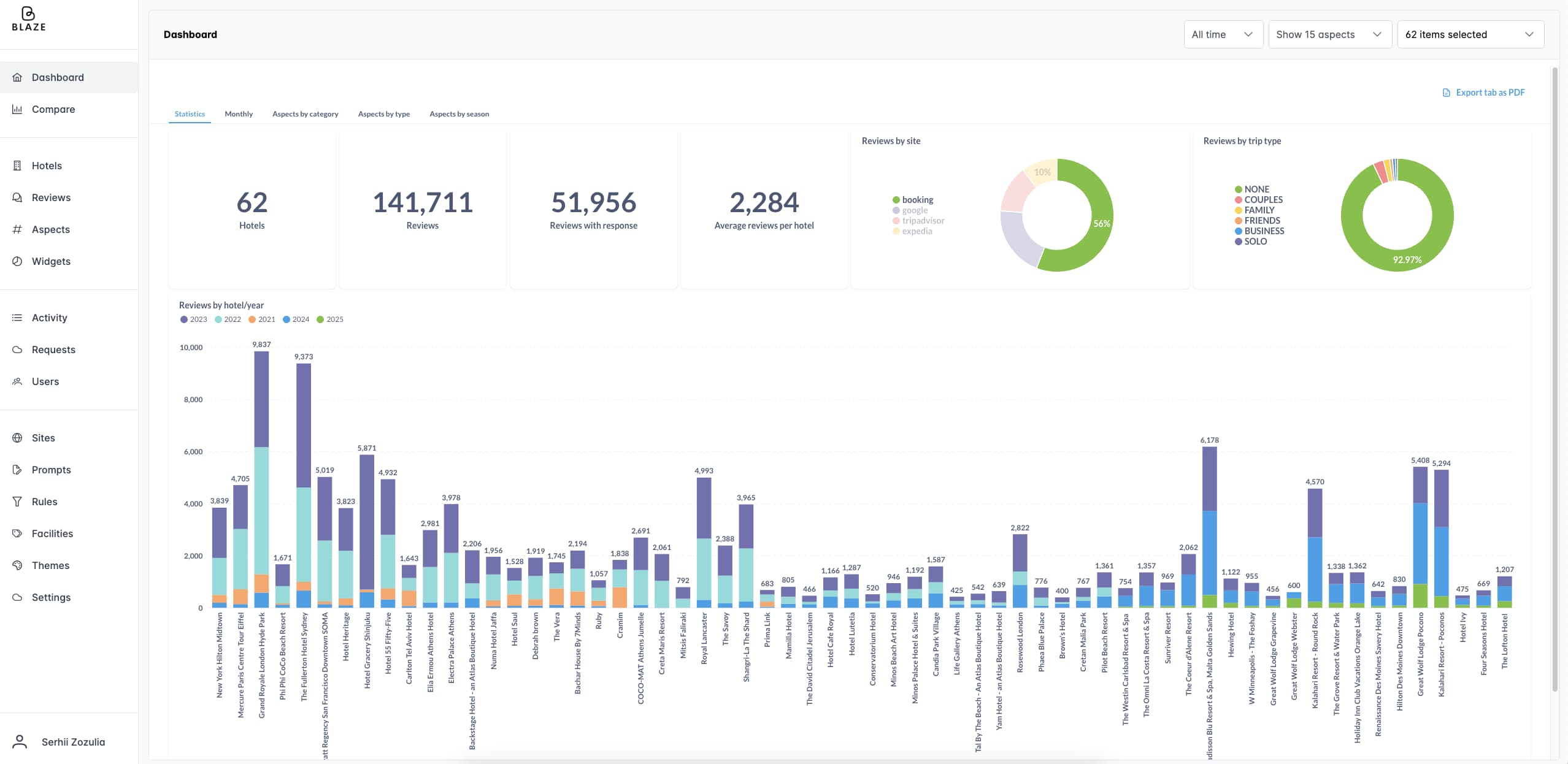Performance intelligence for hotels — aggregates guest reviews across OTAs and distills them into dashboards, competitive benchmarks and assigned action items.