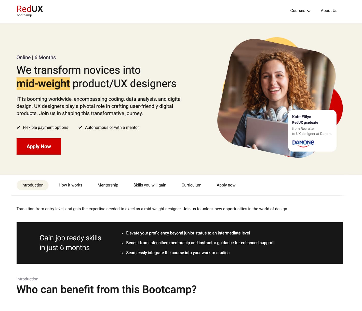 Marketing + onboarding site for a UX design bootcamp that turns novices into mid-weight product designers.