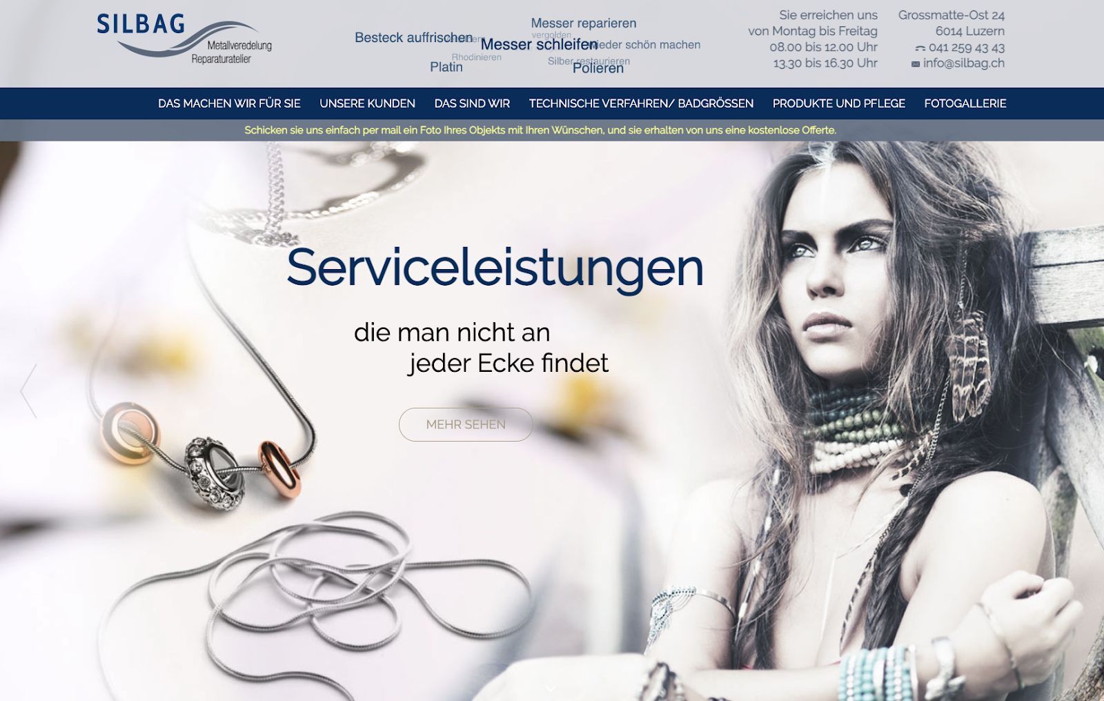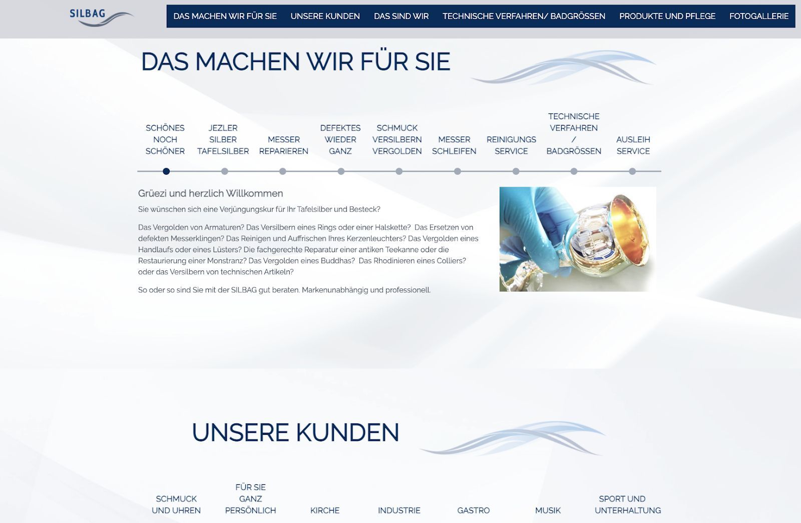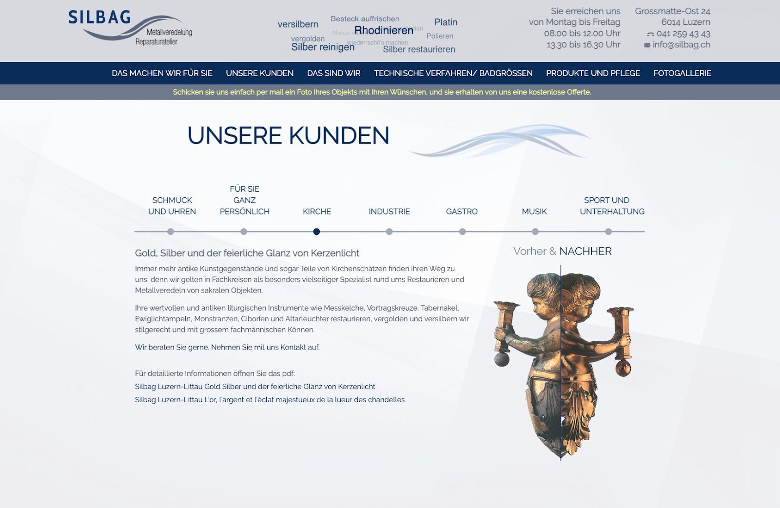 Website for Silbag — Swiss silver-plating specialists cleaning, refreshing and restoring candlesticks and antiques.